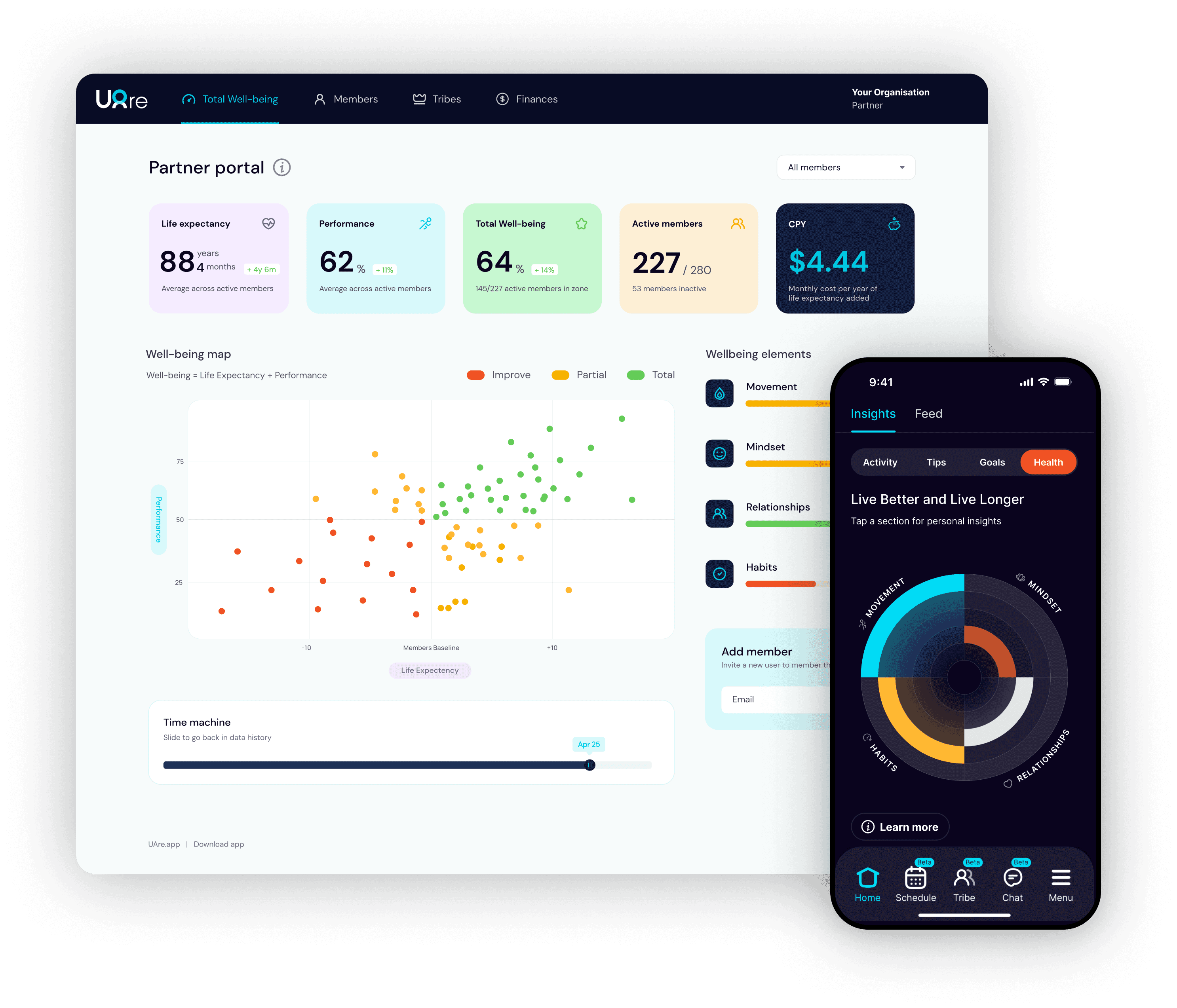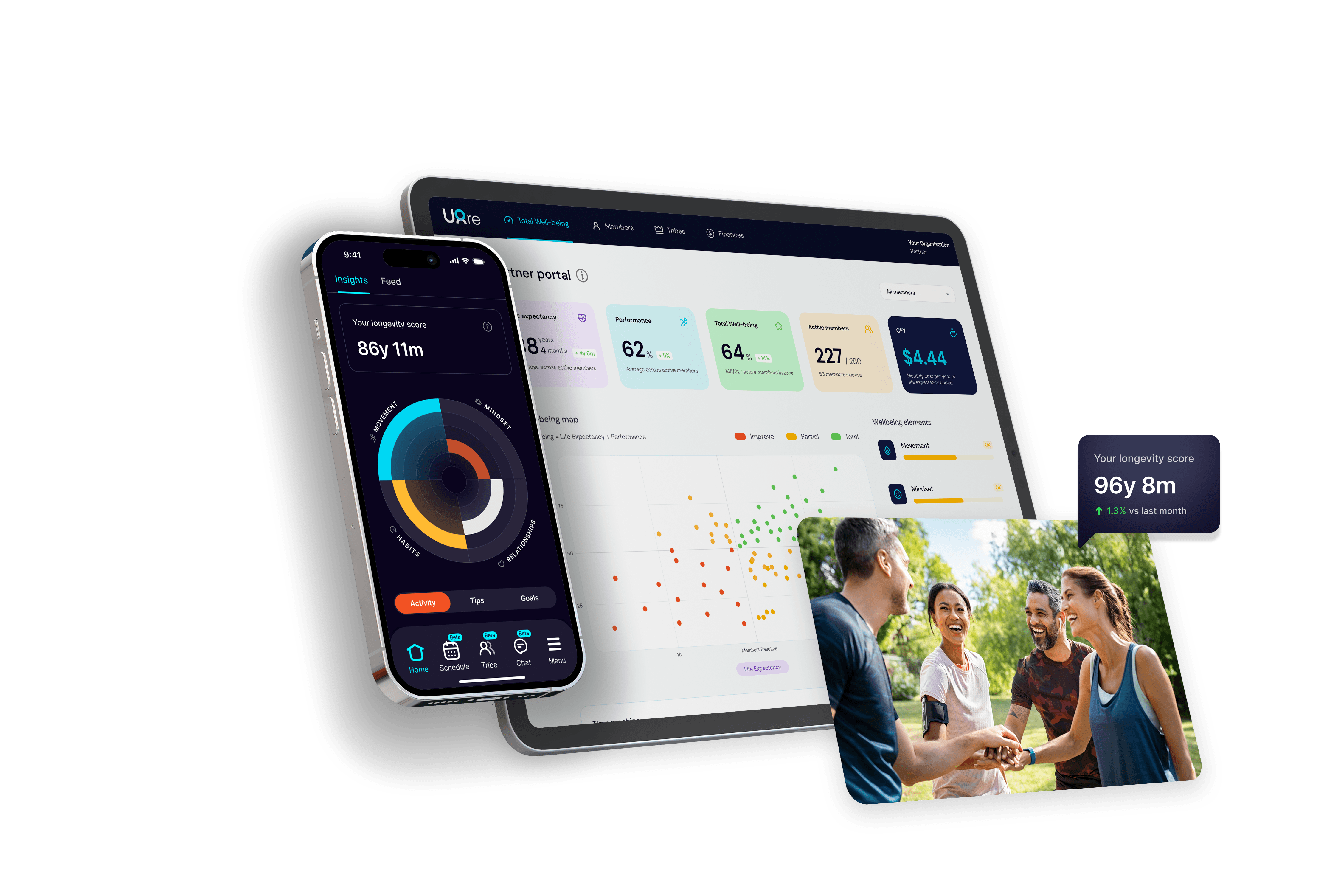By combining an instant health assessment and behavioural change app for your people, AI-driven insights for your organisation and expert human intervention, we have built a unique solution that enables you to outperform your market.